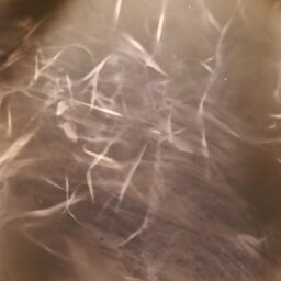 „Papier fotograficzny, brzemienny solami srebra, pozostawiony w naturze i poddawany jej żywiołom niekiedy nawet przez parę tygodni. Często niszczony, pozbawiany czułej warstwy, atakowany pleśnią. Z odbiciem lasu, ciepła rozkładu ślepych koryt rzek, wielkich kęp trawy, spadającego liścia, z odblaskiem na powierzchni wody czy grudą rozoranej ziemi. Jestem zafascynowany możliwościami papieru fotograficznego, jego pracą w czasie, absorbowaniem światła, energii. Ta zdolność pozwala wiernie odwzorować i zachować przemijanie. Układam papiery fotograficzne w naturze już od wielu lat, podczas moich wieczornych wyjść do odległych od miejskiego zgiełku lasów i pól. To mój prywatny, intymny performance, kiedy jestem sam pośród nocy i czuję, że jestem małą częścią tego świata i kosmosu, szukającą własnego miejsca na ziemi. Po tylu latach to uczucie nie traci nic na wartości, lecz przeciwnie, jest silniejsze niż kiedyś. Czasami brakuje mi słów, żeby wyrazić swoje odczucia, ale zostają papiery fotograficzne z maleńkimi zapisami powiewu wiatru, płynącą wodą, spadającym liściem… ze śladem świata“.
